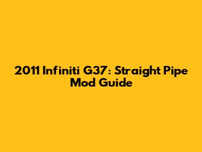 2011 Infiniti G37: Straight Pipe Mod Guide