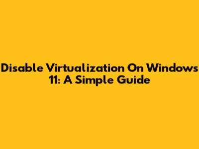 Disable Virtualization On Windows 11: A Simple Guide