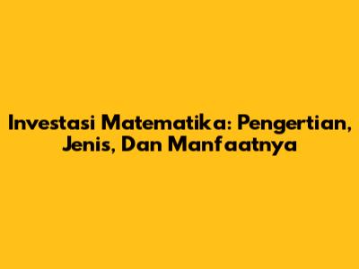 Investasi Matematika: Pengertian, Jenis, Dan Manfaatnya