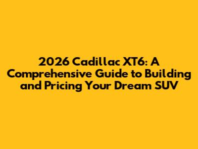 Hey there, car enthusiasts! Are you guys excited about the upcoming 2026 Cadillac XT6? Well, you should be! This luxury SUV is a fantastic blend of style, comfort, and performance. In this comprehensive guide, we'll dive deep into everything you need to know about the 2026 Cadillac XT6, including how to build and price your perfect ride. Get ready to explore the available trims, features, and options to make sure your XT6 is exactly what you want. We'll also cover the potential price points, helping you budget for this exciting purchase. So, buckle up, and let's get started on this exciting journey into the world of the 2026 Cadillac XT6! This will be your go-to resource for everything related to the 2026 Cadillac XT6, from its initial concept to its final price tag. Understanding the build and price process can seem daunting, but fear not! I'll break it down step-by-step, making it easy for you to navigate and customize your future Cadillac. We'll cover everything from the exterior colors to the interior materials and available technology, ensuring you have all the information needed to make informed decisions. We'll also consider different packages and individual options that can enhance your driving experience. The goal here is to empower you with the knowledge needed to confidently build and price your dream 2026 Cadillac XT6. This SUV offers a unique combination of luxury, performance, and practicality, making it a great option for families and individuals. This guide will ensure you're well-prepared for when the 2026 XT6 becomes available, giving you a head start on building and pricing your ideal configuration.