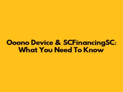 Ooono Device & SCFinancingSC: What You Need To Know