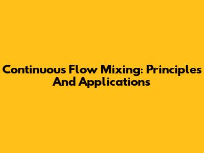 Continuous Flow Mixing: Principles And Applications