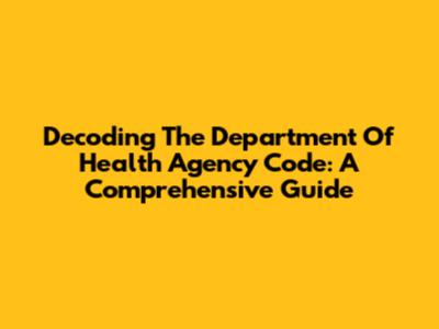 Decoding The Department Of Health Agency Code: A Comprehensive Guide