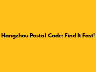 Hangzhou Postal Code: Find It Fast!