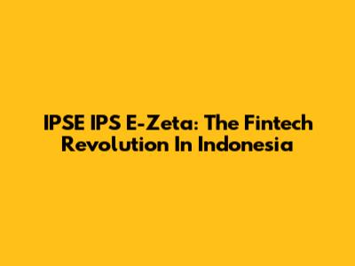 IPSE IPS E-Zeta: The Fintech Revolution In Indonesia
