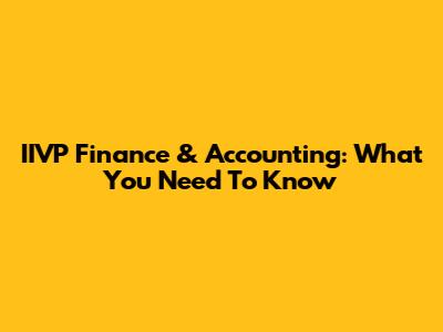 IIVP Finance & Accounting: What You Need To Know