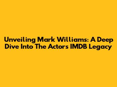 Unveiling Mark Williams: A Deep Dive Into The Actor's IMDB Legacy