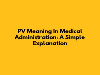 PV Meaning In Medical Administration: A Simple Explanation
