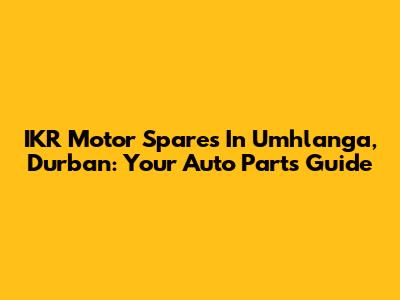 IKR Motor Spares In Umhlanga, Durban: Your Auto Parts Guide