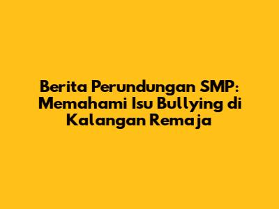 Perundungan atau bullying adalah perilaku agresif yang dilakukan secara berulang oleh seseorang atau sekelompok orang terhadap orang lain yang dianggap lebih lemah. Perilaku ini bertujuan untuk menyakiti, mengintimidasi, atau mempermalukan korban. Perundungan dapat terjadi dalam berbagai bentuk, mulai dari yang kasat mata hingga yang tersembunyi. Dalam konteks berita perundungan SMP, memahami berbagai jenis perundungan sangat penting untuk mengidentifikasi dan menanganinya secara efektif.