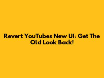 Revert YouTube's New UI: Get The Old Look Back!