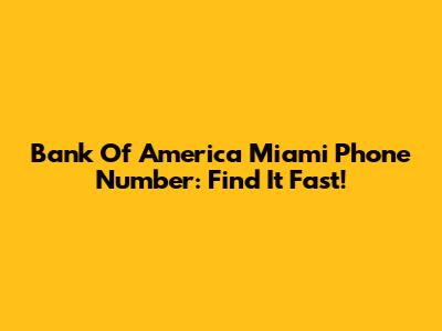 Bank Of America Miami Phone Number: Find It Fast!