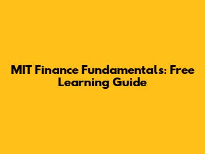 MIT Finance Fundamentals: Free Learning Guide