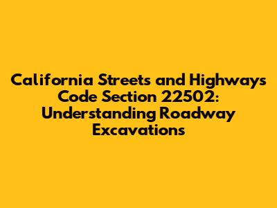 Alright, guys, let's dive into California Streets and Highways Code Section 22502. This section is all about regulating excavations that happen on or near state highways. If you're planning any kind of digging that might affect a state highway, you need to know what this code says. Ignorance isn't bliss when it comes to legal stuff, especially when it involves potentially disrupting public infrastructure and public safety.