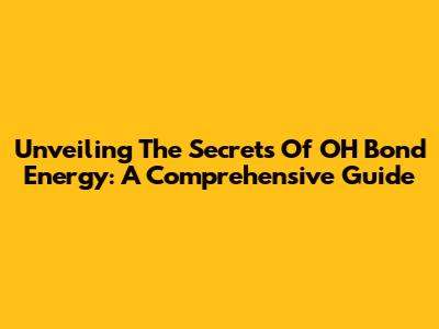 Unveiling The Secrets Of OH Bond Energy: A Comprehensive Guide