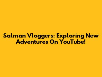 Salman Vloggers: Exploring New Adventures On YouTube!