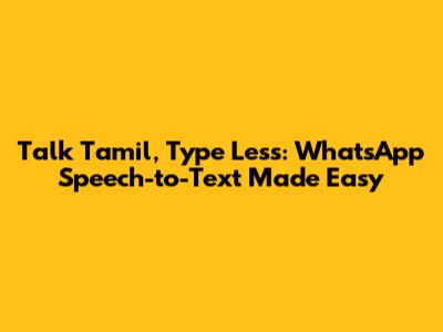 Talk Tamil, Type Less: WhatsApp Speech-to-Text Made Easy