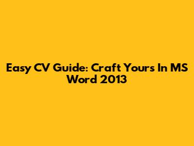 Easy CV Guide: Craft Yours In MS Word 2013