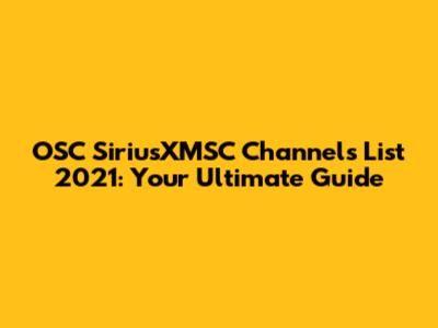 OSC SiriusXMSC Channels List 2021: Your Ultimate Guide