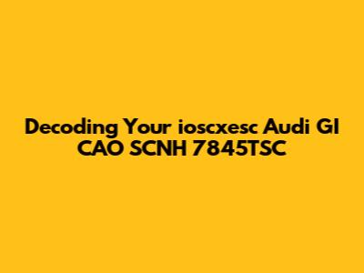 Hey guys, let's dive into something a bit technical today: the ioscxesc audi gi cao scnh 7845tsc. I know, it sounds like a mouthful, but trust me, we'll break it down and make it understandable. This isn't just a random string of characters; it's likely a code or identifier associated with your Audi, and understanding it can be super helpful. Whether you're troubleshooting an issue, trying to understand your car's features, or even just curious, this guide is for you. We'll explore what these kinds of codes typically represent, how they're used, and why they matter. Think of it as a secret decoder ring for your Audi! So, grab your coffee (or your favorite beverage), and let's get started on cracking this code together.