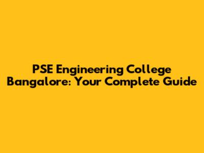 PSE Engineering College Bangalore: Your Complete Guide