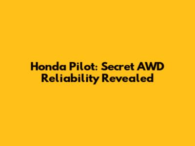 Honda Pilot: Secret AWD Reliability Revealed