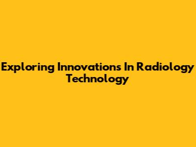Exploring Innovations In Radiology Technology