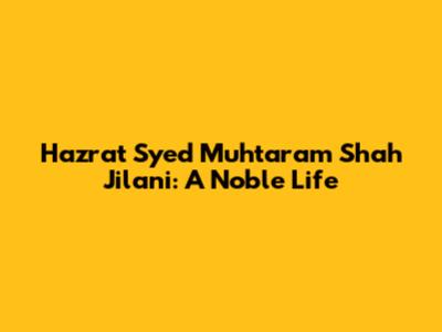 Hazrat Syed Muhtaram Shah Jilani: A Noble Life