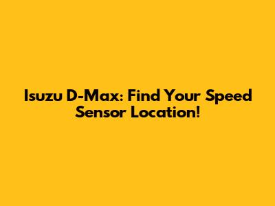 Isuzu D-Max: Find Your Speed Sensor Location!