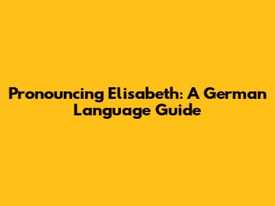 Pronouncing Elisabeth: A German Language Guide