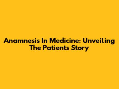Anamnesis In Medicine: Unveiling The Patient's Story