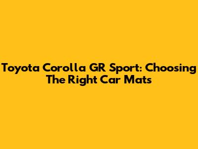 Toyota Corolla GR Sport: Choosing The Right Car Mats