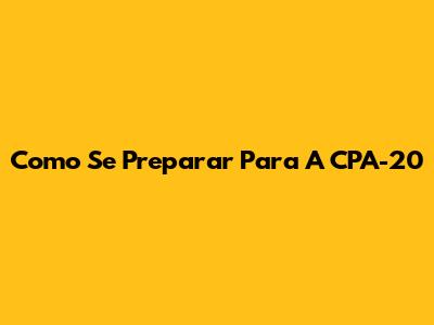 Como Se Preparar Para A CPA-20