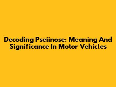 Decoding Pseiinose: Meaning And Significance In Motor Vehicles