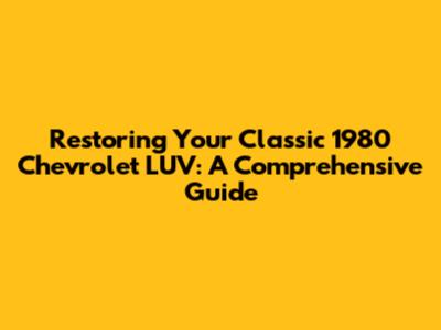 Restoring Your Classic 1980 Chevrolet LUV: A Comprehensive Guide