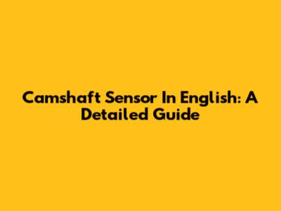 Camshaft Sensor In English: A Detailed Guide