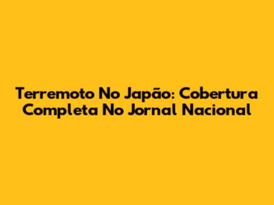 Terremoto No Japão: Cobertura Completa No Jornal Nacional