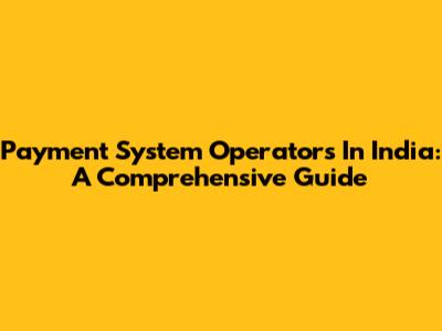Payment System Operators In India: A Comprehensive Guide