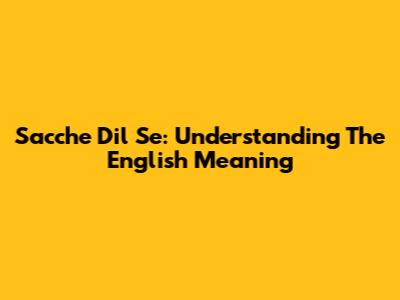 Sacche Dil Se: Understanding The English Meaning