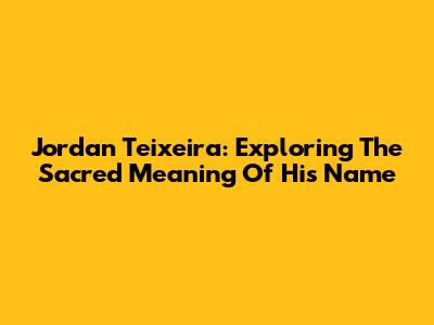 Jordan Teixeira: Exploring The Sacred Meaning Of His Name