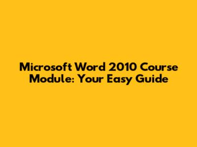 Microsoft Word 2010 Course Module: Your Easy Guide