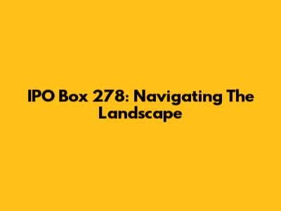 IPO Box 278: Navigating The Landscape