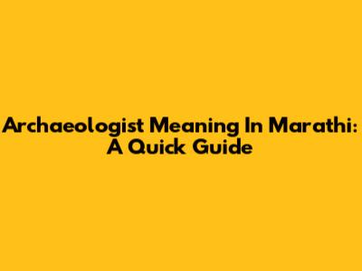 Archaeologist Meaning In Marathi: A Quick Guide