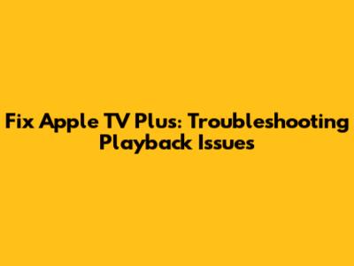 Fix Apple TV Plus: Troubleshooting Playback Issues