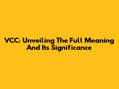 VCC: Unveiling The Full Meaning And Its Significance