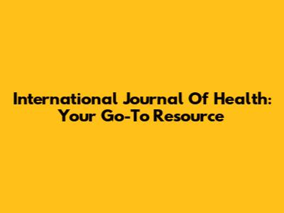 International Journal Of Health: Your Go-To Resource