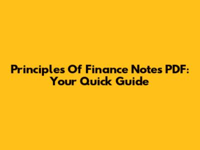 Principles Of Finance Notes PDF: Your Quick Guide