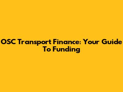 OSC Transport Finance: Your Guide To Funding
