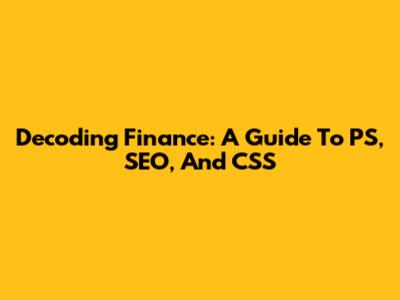 Decoding Finance: A Guide To PS, SEO, And CSS