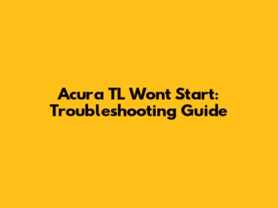 Acura TL Won't Start: Troubleshooting Guide